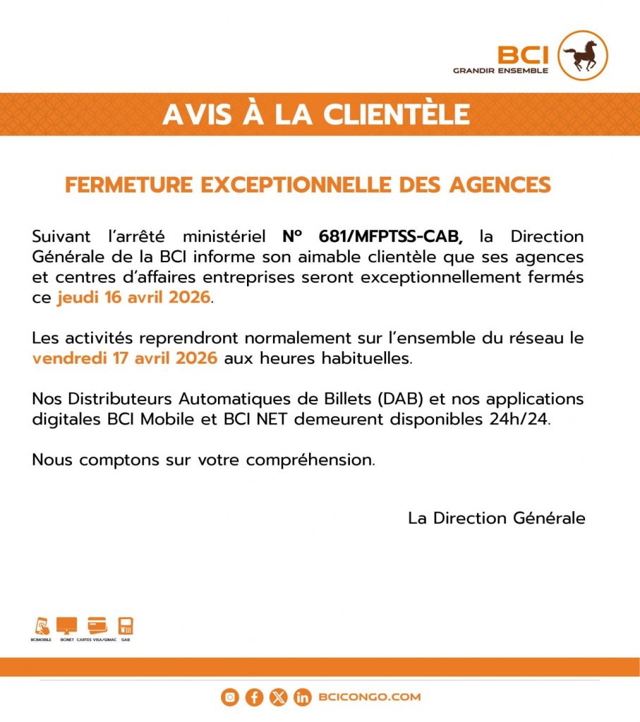 Filiale du Groupe BCP ,  elle bĂ©nĂ©ficie de lâexpertise et de la soliditĂ© financiĂšre de ce grand groupe international, tout en conservant son identitĂ© congolaise: prise de dĂ©cision locale, cadres nationaux…