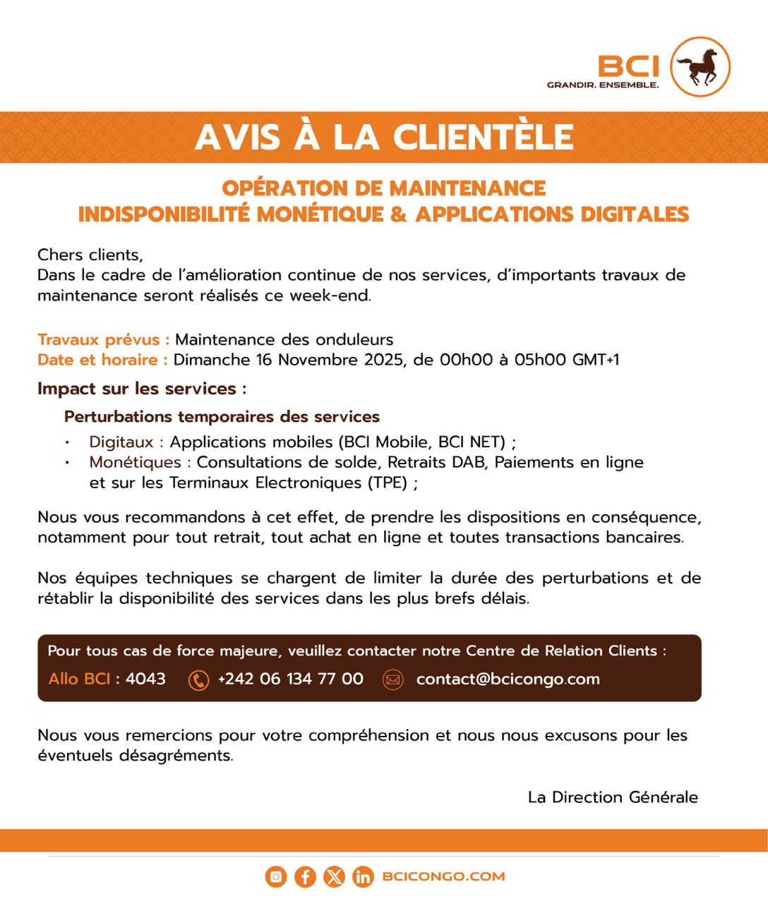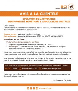 • Avis d’Appel d’offre -Acquisition de six (06) nouveaux groupes électrogènes (BCI) sis à Brazzaville.